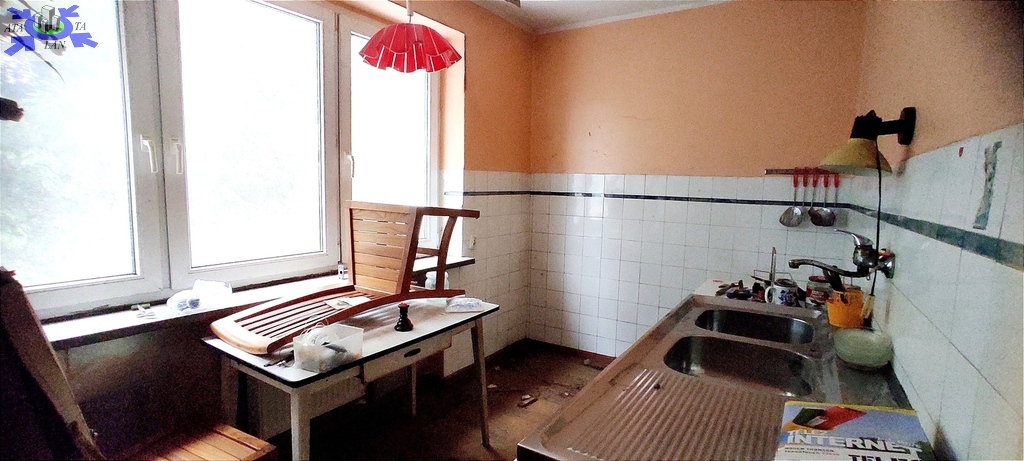 Dom wymaga sporego remontu, co pozwala dostosować wnętrza do potrzeb najemcy.