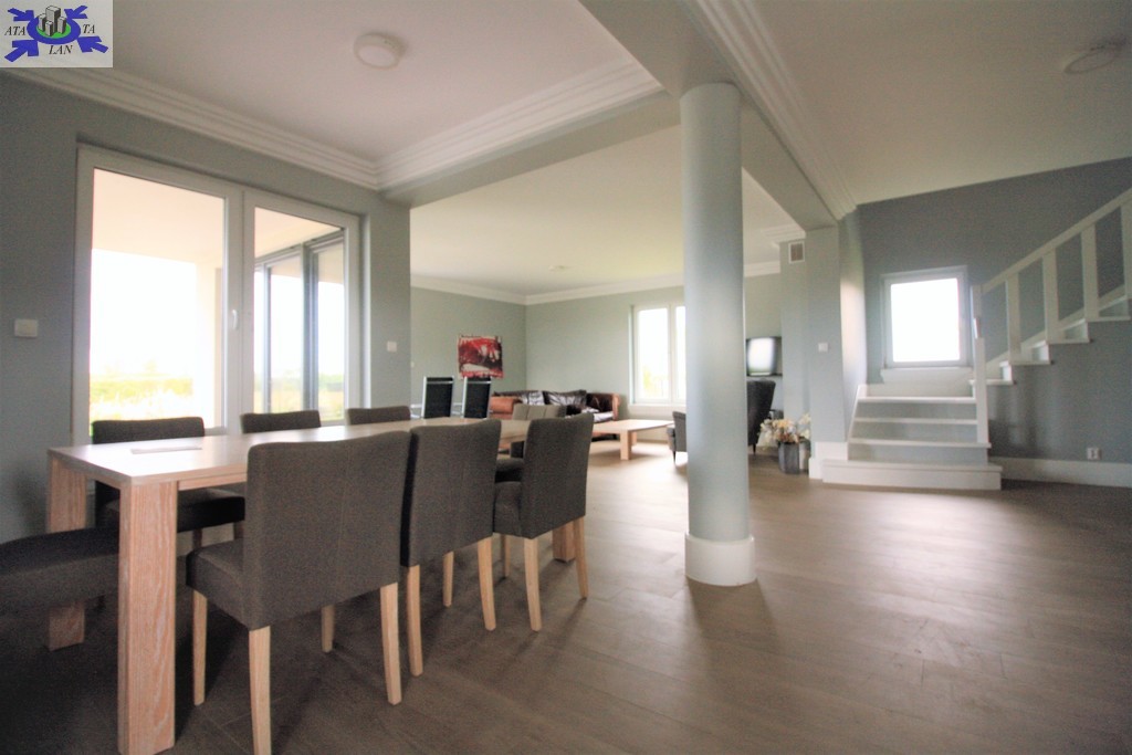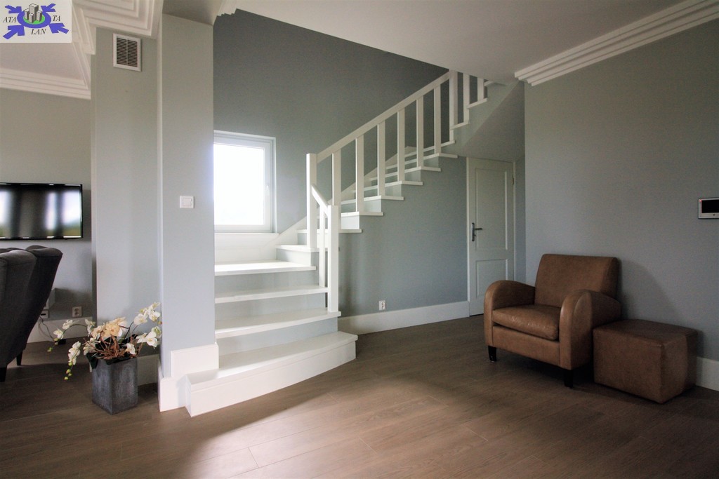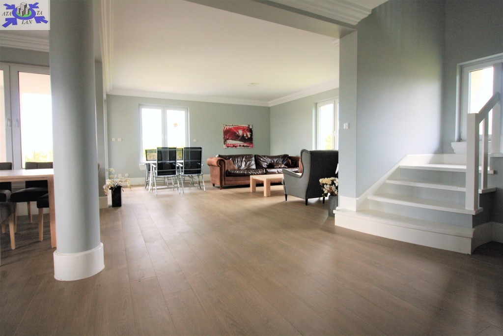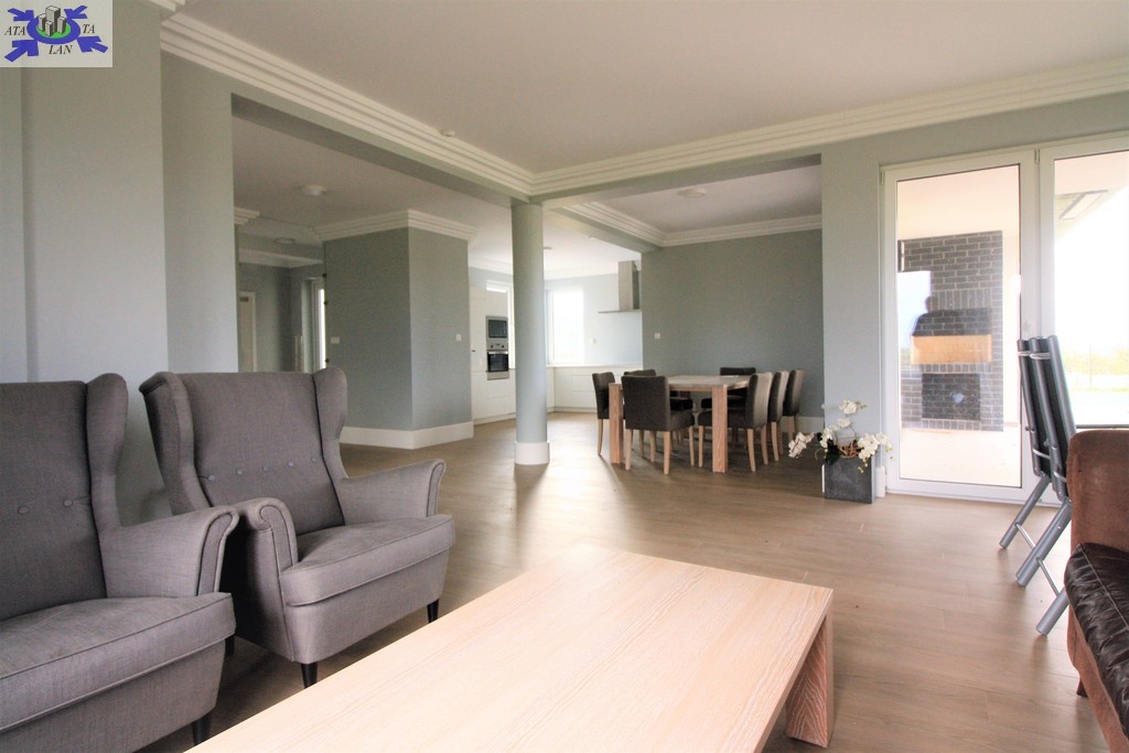 Dom i część biurowa są częściowo umeblowane. Nieruchomość wyposażona jest w okna i rolety antywłamaniowe oraz system alarmowy. Wysoki standard wykończenia zapewnia komfort i bezpieczeństwo.