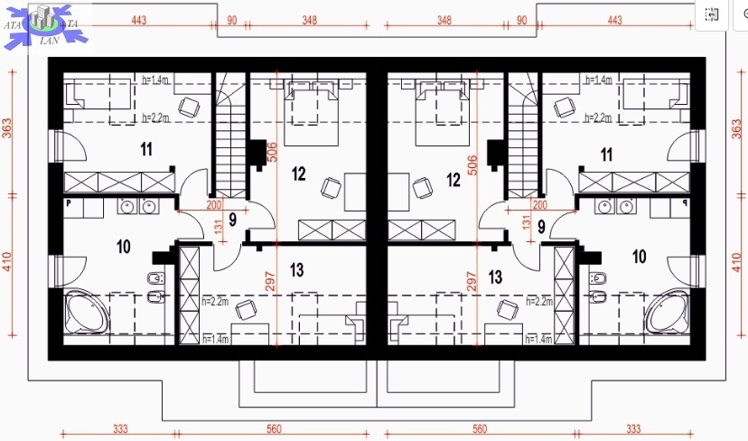 - łazienka 11,90 m2 (14,10 m2).