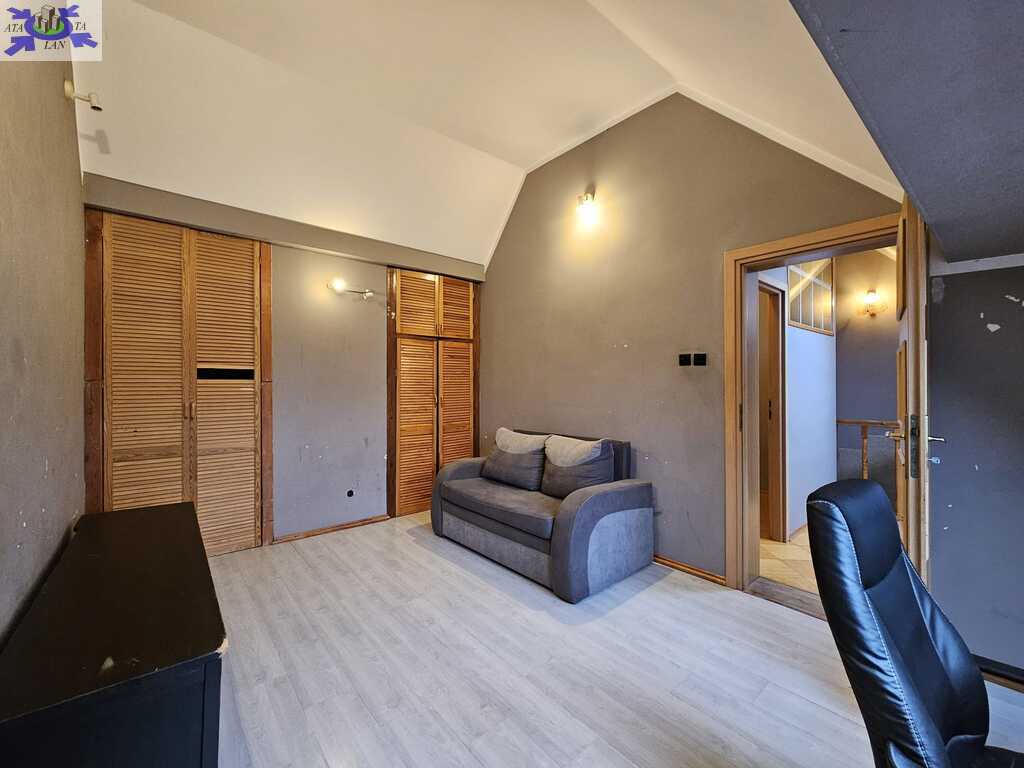I poziom 72m2 duży pokój dzienny (można uzyskać z niego 2 pokoje) z balkonem, sypialnia, kuchnia z oknem, z przejściem do pomieszczenia gospodarczego, w którym znajduje się II obiegowy piec gazowy, łazienka, oddzielne wc i przedpokój. Kuchnia umeblowana. W łazience znalazło się miejsce zarówno na wannę jak i kabinę prysznicową. Istnieje możliwość powiększenia łazienki poprzez połączenie z toaletą i pomieszczeniem gospodarczym od strony kuchni.