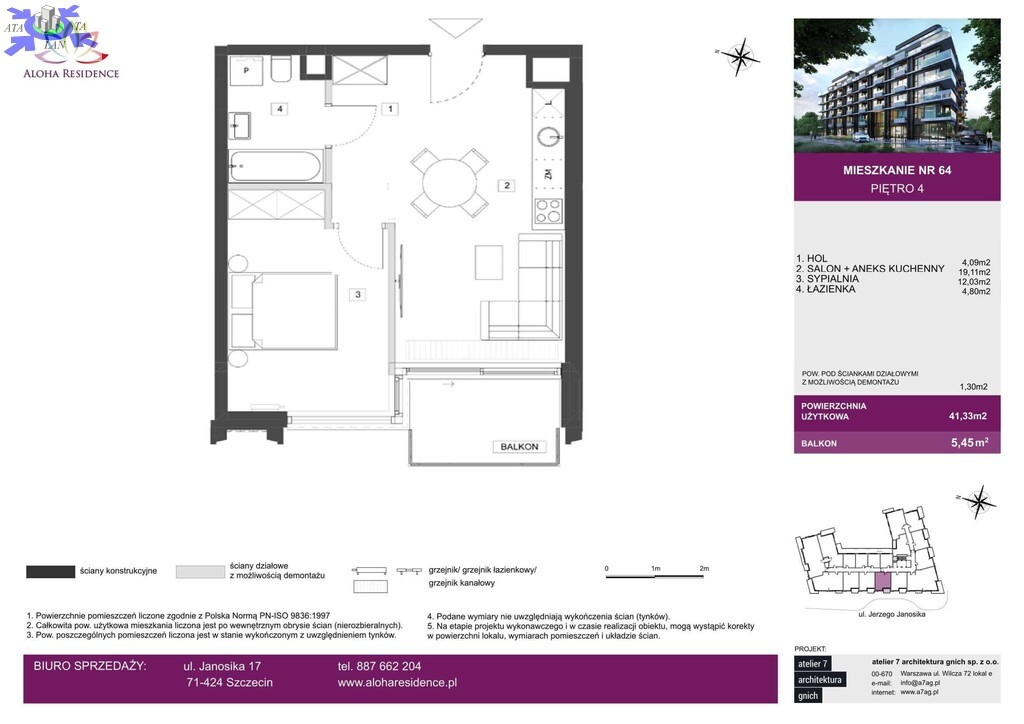 Oferta dotyczy 2-pokojowego apartamentu o powierzchni 41.33 m2 od strony zachodniej na IV pietrze. Apartament w stanie deweloperskim, stan do wykończenia.