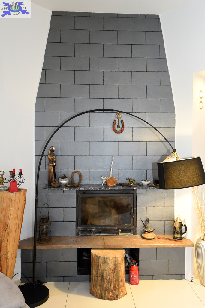 W pokoju działający kominek w oryginalnej zabudowie.