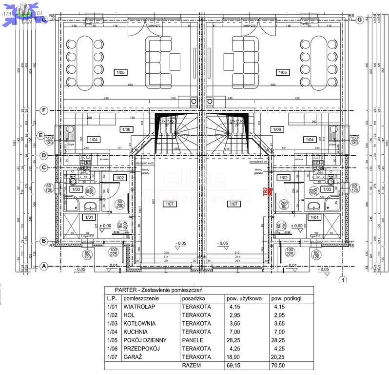 Garaż w bryle budynku o powierzchni 20,25m2.