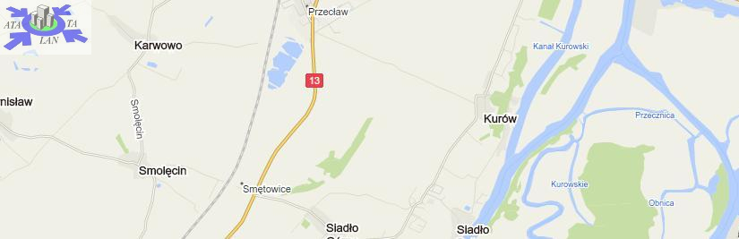 Działka pięknie położona w Kurowie o szerokości 60 m przy granicy z drogą.