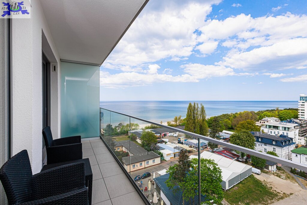 Apartament w Międzyzdrojach z widokiem bocznym na morze, zaledwie 100m od plaży. Apartament oddany do użytku w 2020r. Apartamentowiec, w którym się znajduje, to nowoczesny budynek bez barier, wyposażony w dwie windy przystosowane dla osób niepełnosprawnych, portiernię, halę garażową oraz lokale handlowo-usługowe w parterze.