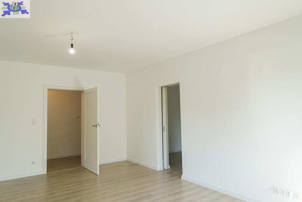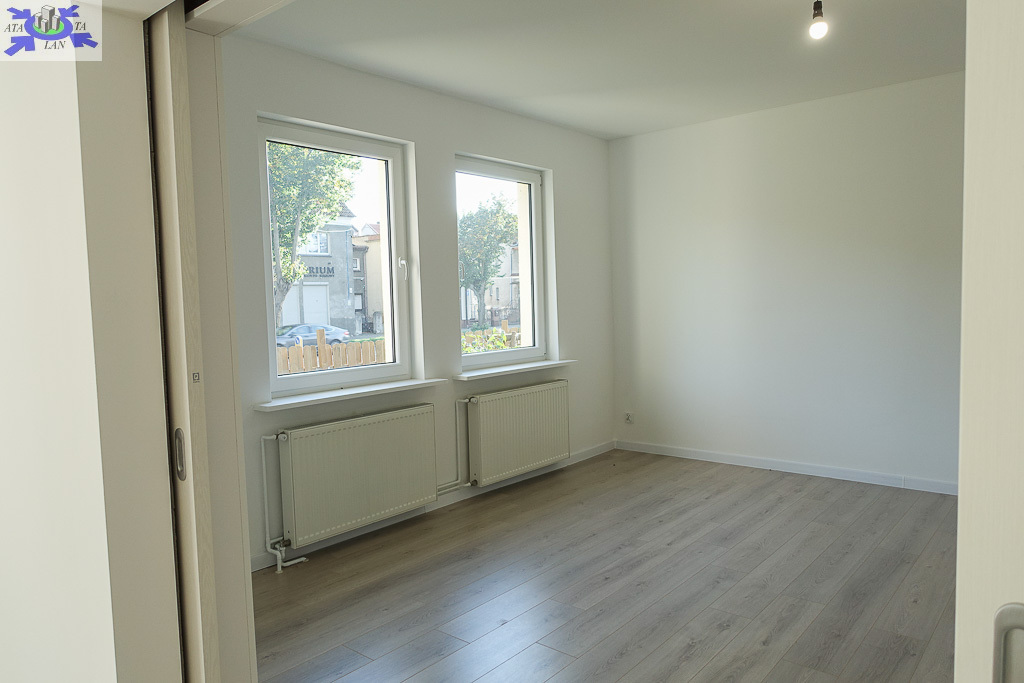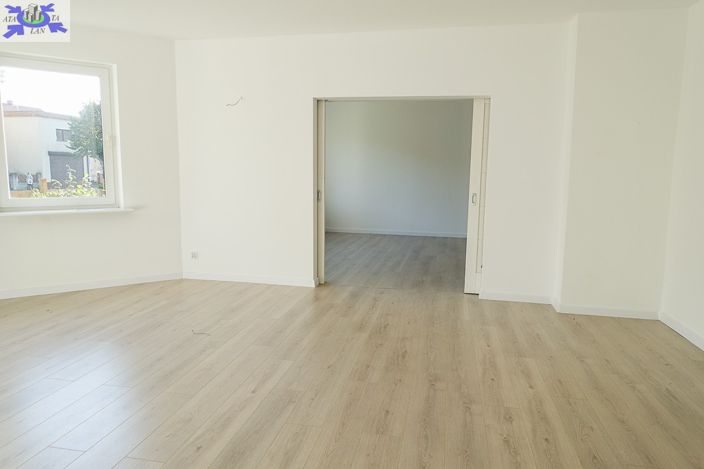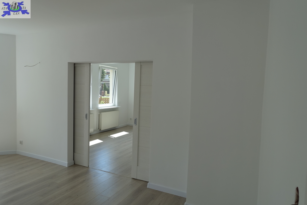 The ground floor of this former German villa, with a total area of 101.25 m2, has undergone a major renovation. The apartment also includes a garage within the building, part of the garden and basement, and part of the attic. A 55/100 share in the building's common areas is allocated to the entire property. The plot size is 647 m2. The ground floor includes a 324 m2 plot. The building contains two independent apartments one on the ground floor, which is for sale, and the other on the first floor. The roof has been renovated. GROUND FLOOR 4 rooms (28 m2, 18 m2, 16 m2, and 10 m2), a kitchen (approx. 7.5 m2), and a bathroom (approx. 4 m2). The room with a bay window provides access to two smaller rooms with sliding doors, plus a separate large room. The building has access to the garden on the southwest side. The basement hallway provides access to the garage underneath the building, and a gate that opens onto the driveway. The apartment has undergone a major renovation. A new facade was built, and all installations (electrical, heating, and plumbing) were replaced. New radiators were installed. New plumbing connections were installed in the kitchen and bathroom. New PVC windows. Burglar-proof entrance doors and new white interior joinery. New laminate flooring, except for the kitchen and bathroom, which have a screed. The interior walls were finished with a white plaster finish, and new floors and doors, both interior and exterior, were installed. Heating and hot water are provided by a new gas boiler. Access is via a paved road.