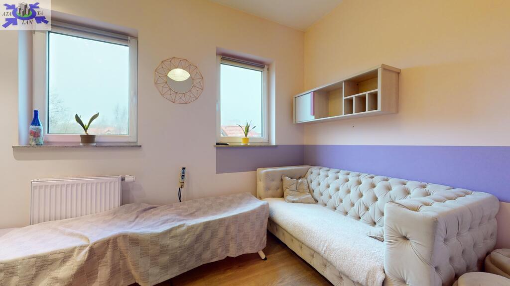 - Piętro 3 sypialnie w tym jedna duża z garderobą, łazienka z pralką i wanną, nieduży balkon.