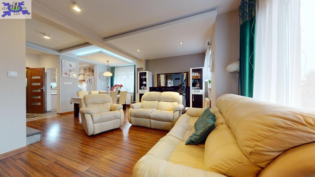 Oferujemy na sprzedaż przestronny dom w zabudowie bliźniaczej o powierzchni całkowitej 174 m2, z salonem z kominkiem, tarasem, położony na pięknej, dużej działce o powierzchni 673 m2.