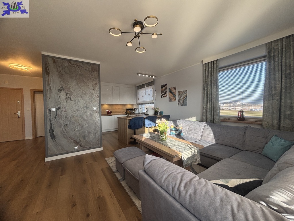 - pokoju dziennego połączonego z kuchnią z wyjściem na duży 12m2 balkon