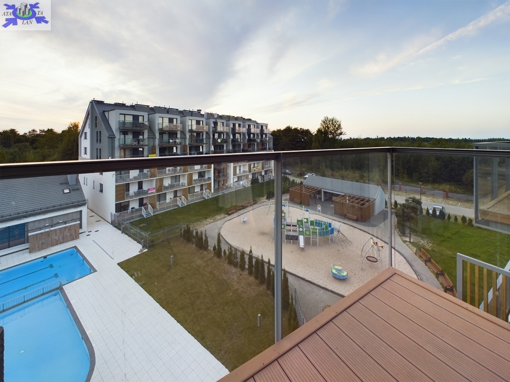 -Balkon tarasowy typu loggia Imponujący, duży taras z widokiem na morze, basen oraz plac zabaw - idealne miejsce na poranną kawę lub wieczorne chwile relaksu.