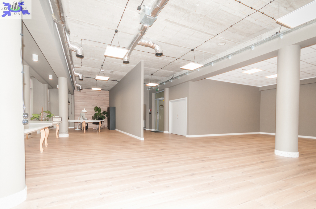 Lokal zajmuje część pierwszego piętra i składa się z duże otwartej powierzchni, pomieszczenia socjalnego/kuchenka. Z korytarza dostęp do sanitariatów dostępnych dla najemców 1 piętra, a także dostęp do pomieszczenia magazynowego (ok. 60mkw).