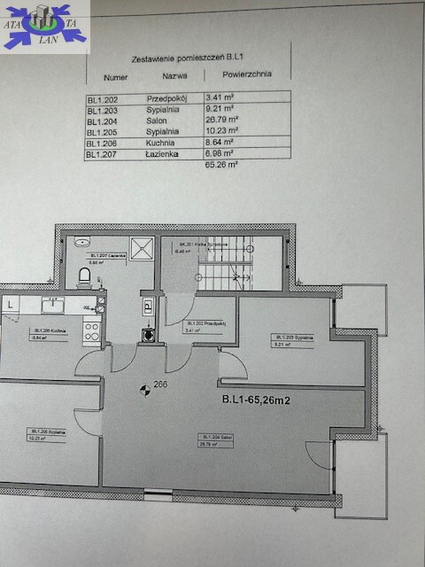 - pokój - 26,79 m2,