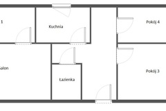 - 4 pokoje z czego jeden przechodni - istnieje możliwość usunięcia ściany i stworzenia bardzo przestronnego salonu.