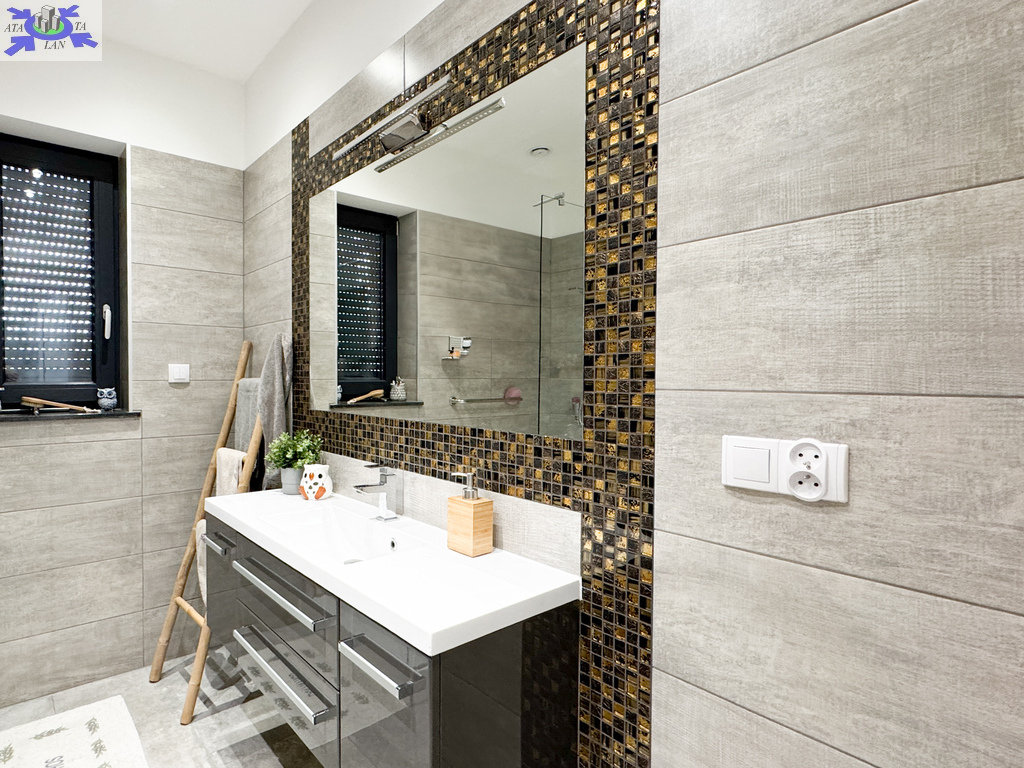 Dwie sypialnie, przedpokój, łazienka z prysznicem oraz osobne WC, pomieszczenie gospodarcze (kotłownia, pralnia, suszarnia)- stanowią drugą część domu.