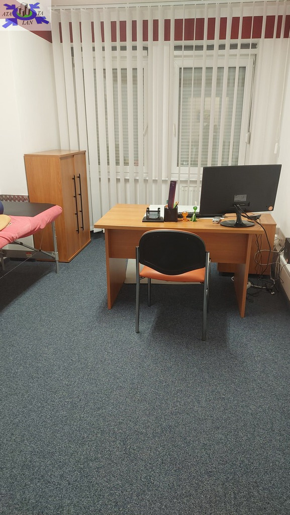 W centrum miasta na jednym z osiedli znajduje się samodzielny budynek parterowy, który jest przedmiotem najmu. Pełnił on funkcję medyczną, były tam gabinety lekarskie, poczekalnia, gabinet zabiegowy, pokoje do masaży i rehabilitacja. Jest możliwe prowadzenie tam innej działalności. Dwa niezależne wejścia, brak barier architektonicznych, łatwy sposób poruszania się po obiekcie. Przy wejściu znajduje się otwarte pomieszczenie pełniące rolę recepcji, obok jest jedna z 3 toalet. Wygodny korytarz prowadzi do 7 niezależnych gabinetów, każdy wyposażony i umeblowany, dodatkowy pokój pełnił rolę pokoju zabiegowego, są jeszcze 3 pomieszczenia z kabinami, oddzielonymi od siebie lekkimi ściankami . Cały obiekt utrzymany bardzo dobrze. Okna PCV, rolety zewnętrzne. Ogrzewanie i ciepła woda podgrzewana elektrycznie. Zimą rachunki za prąd wynosiły 380 Euro miesięcznie. Lokal idealnie nadaje się pod usługi medyczne, ale jest możliwość wynajęcia go w innym celu jako biura, branża kosmetyczna, rehabilitacyjna. Jest do wydania od zaraz. Zapraszam