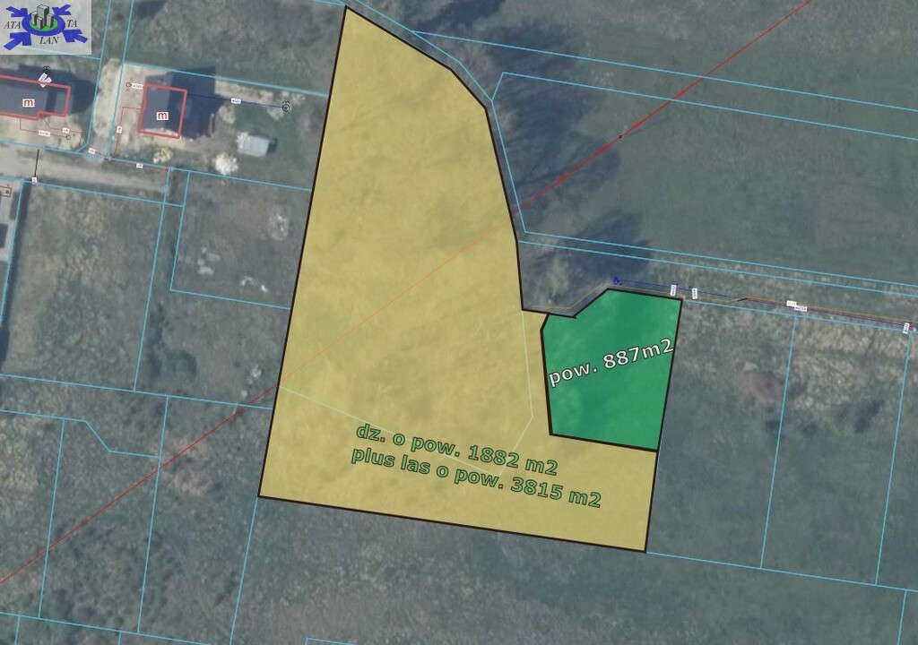 W sprzedaży posiadamy również działkę sąsiadującą pod zabudowę z lasem o łącznej pow. 5697 m2.