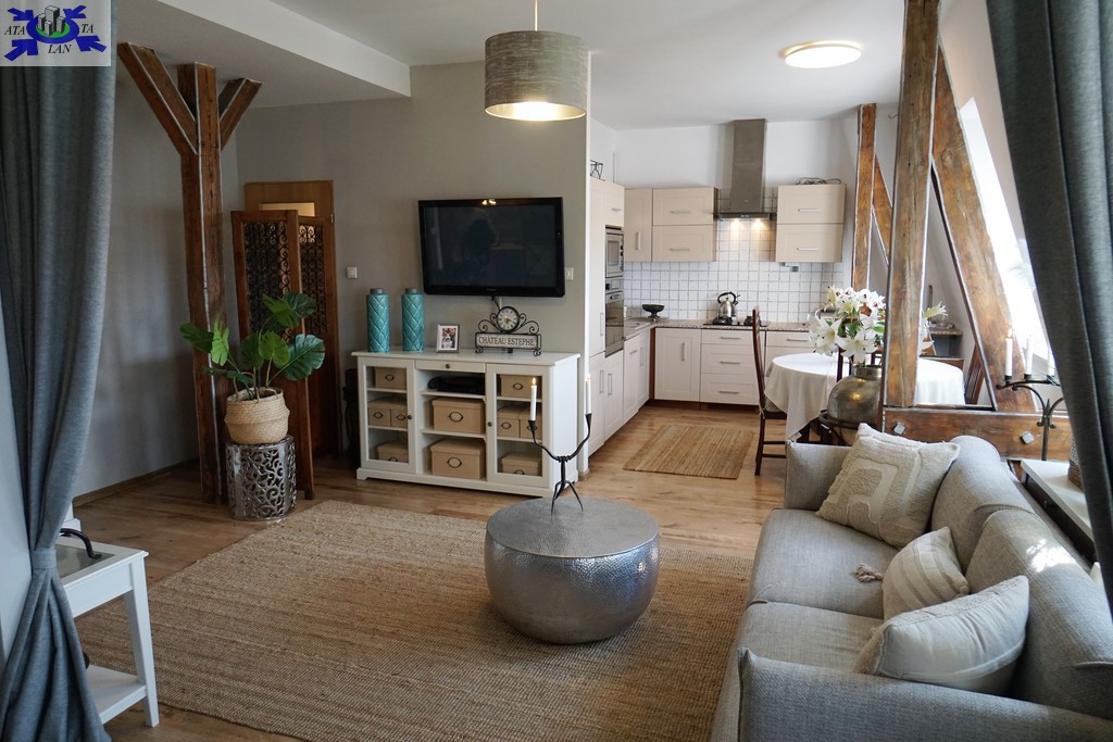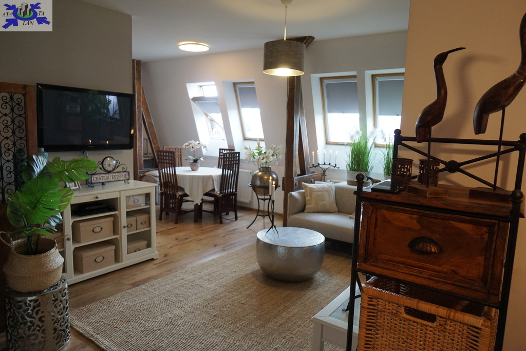 Na sprzedaż pięknie urządzony apartament z "duszą" o pow. 55,8 m2 (powierzchnia całkowita ok. 63 m2) położony na czwartym piętrze czteropiętrowej kamienicy w Centrum Szczecina. Adaptacja z 2012 r. - użytkowane od 2015 r - wszystkie instalacja praktycznie nowe. Mieszkanie w pełni wyposażone ze szczególną dbałością o detale. Duży pokój w którym mamy część salonową oraz sypialnianą. Na wyposażeniu sofa, łóżko sypialniane, kredens, komoda w mieszkaniu może zostać praktycznie wszystko widoczne na dokumentacji zdjęciowej. Dodatkowo garderoba. Kuchnia w stałej zabudowie na wyposażeniu sprzęt AGD (zabudowana lodówka, piekarnik, mikrofalówka, okap) w części jadalnianej stół z krzesłami. Łazienka z kabiną prysznicową w gustownej glazurze i terakocie. Możliwość korzystania z poddasza strychowego. Zapraszam na prezentację tej nietuzinkowej oferty.