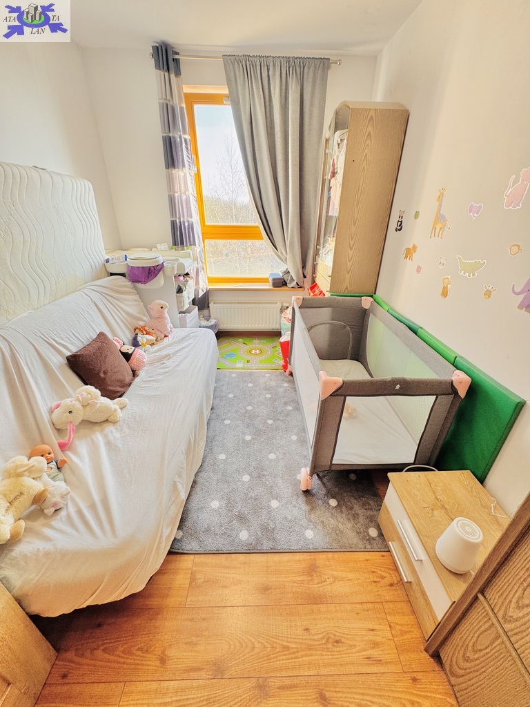 Przy budynku plac zabaw dla dzieci oraz wydzielony parking za szlabanem dla mieszkańców,