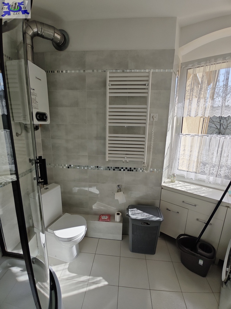 Łazienka Wyposażona w kabinę prysznicową i WC, przemyślana pod kątem komfortu użytkowania.