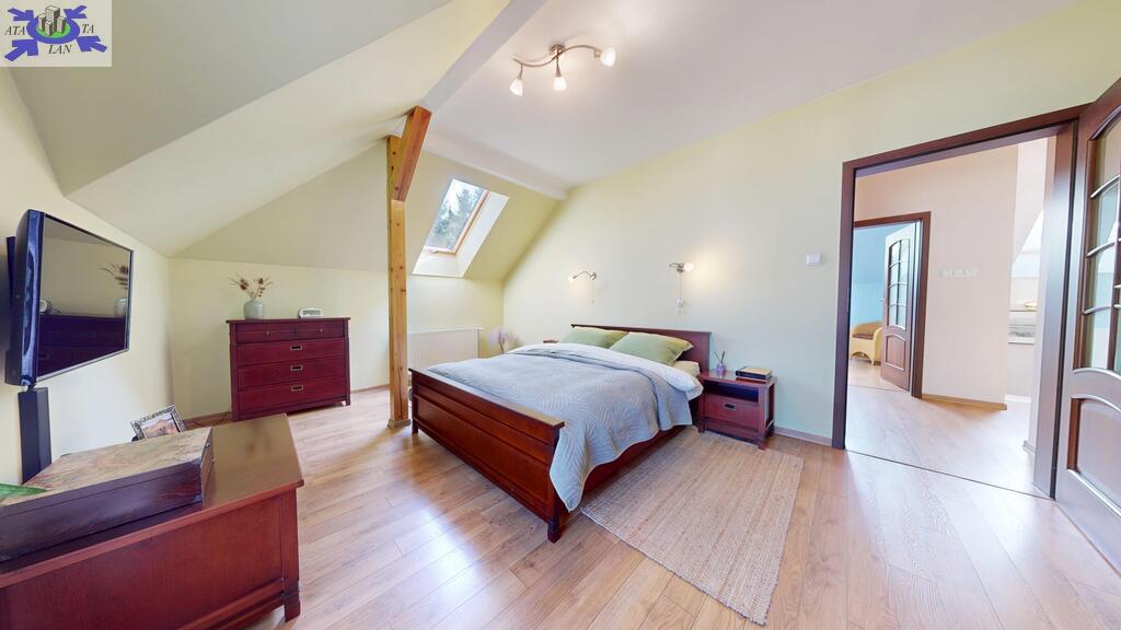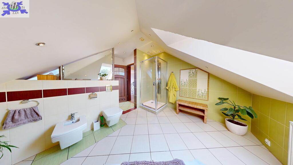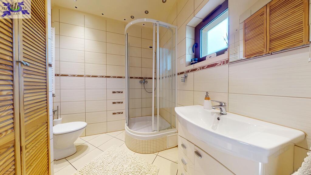 - pokój kąpielowy z wanną oraz kabiną prysznicową,