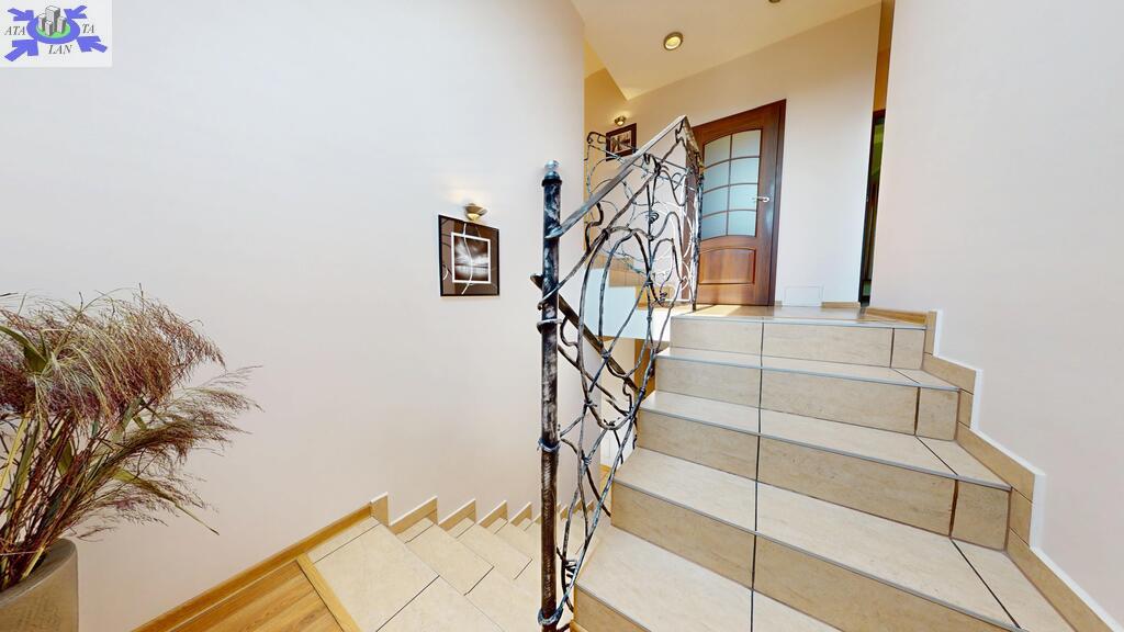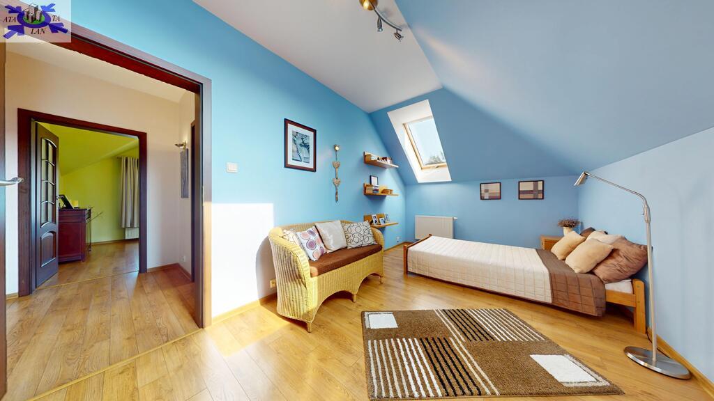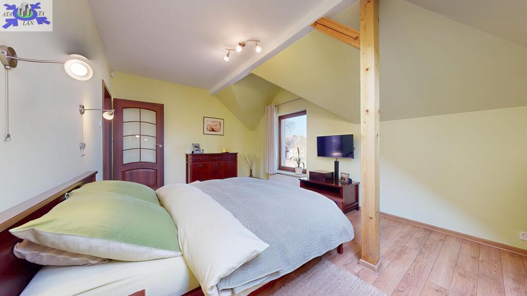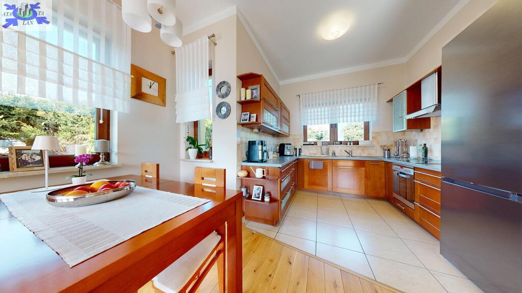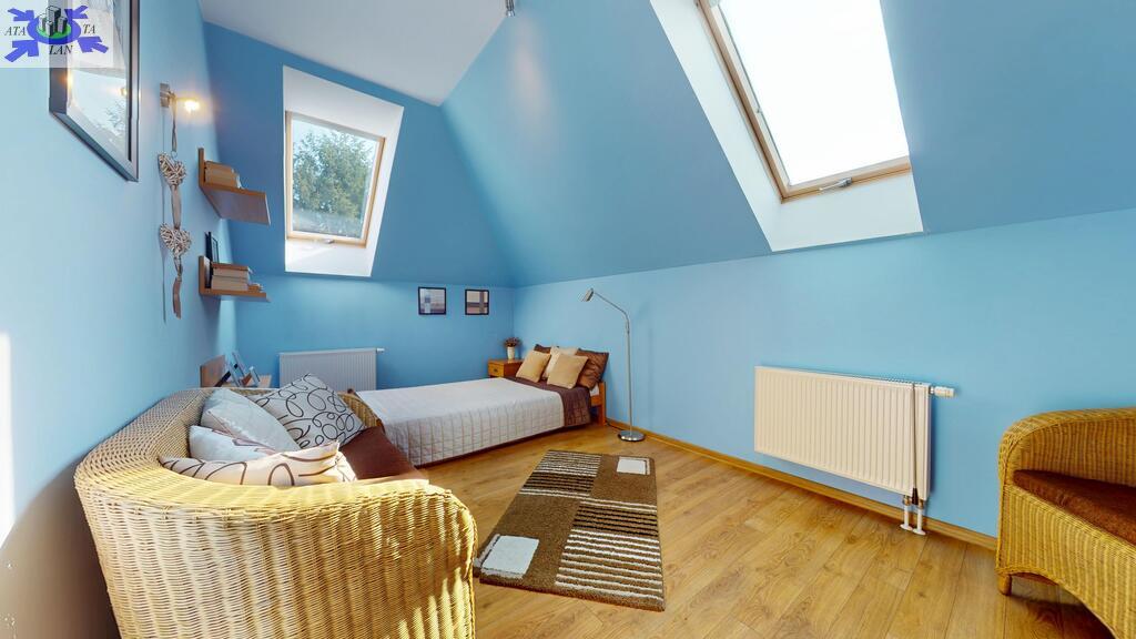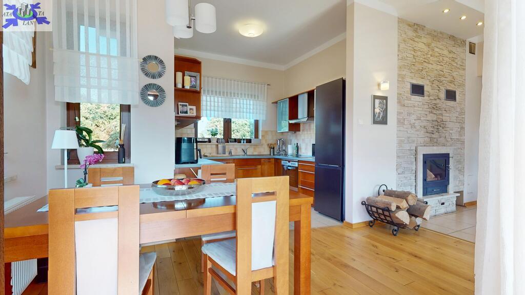 Standard widać na załączonych zdjęciach, nie wymaga żadnego remontu. Ściany gładko malowane, stolarka drewniana, w salonie na podłodze drewno, w częściach komunikacyjnych terakota, w sypialniach panele. Właściciele wykańczali dom pod siebie nie szczedząc na kosztach metariałów.