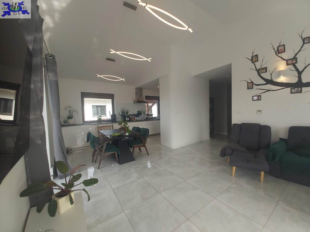 Jadalnia połączona z salonem, tworzy otwartą przestrzeń, która sprzyja spotkaniom rodzinnym i towarzyskim.