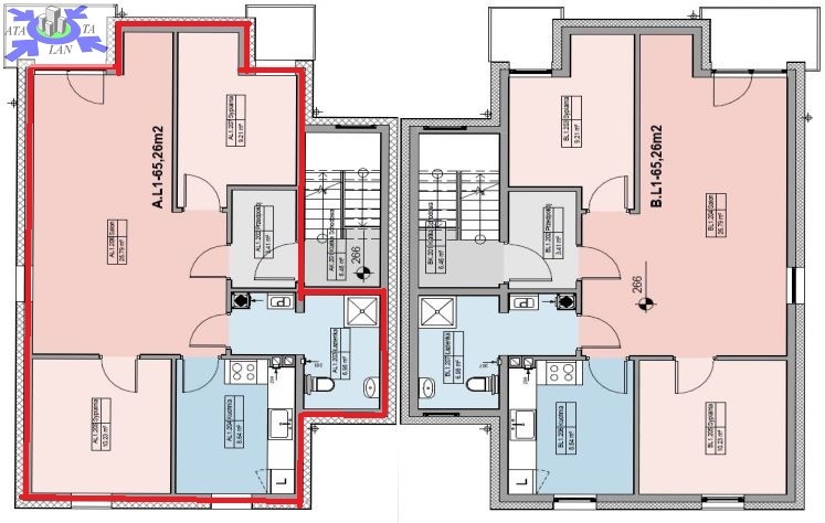 Lokal mieszkalny o pow. użytkowej 65,26 m2 składa się z następujących pomieszczeń
