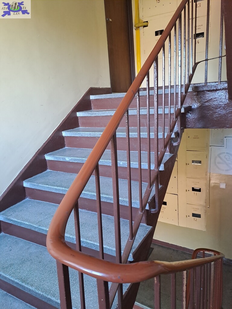 Blok po termomodernizacji, klatka schodowa czysta.