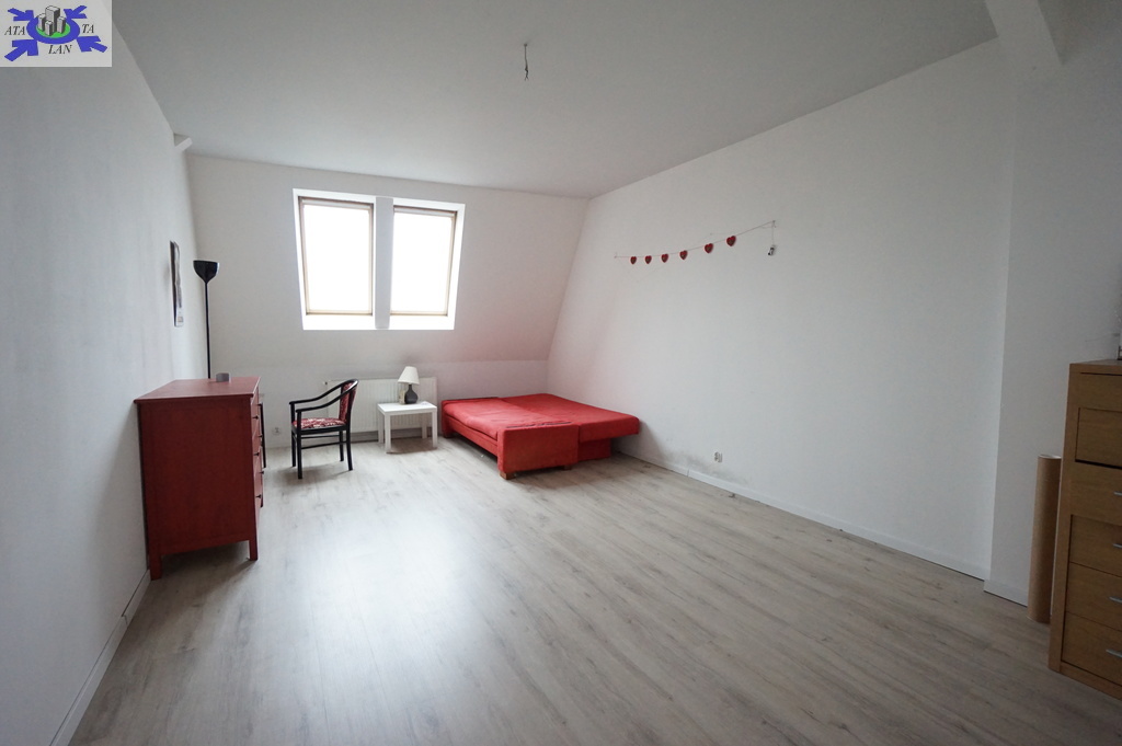 Standard do zamieszkania. Na ścianach gładzie, na podłogach panele, okna częściowo połaciowe, częściowo PCV.