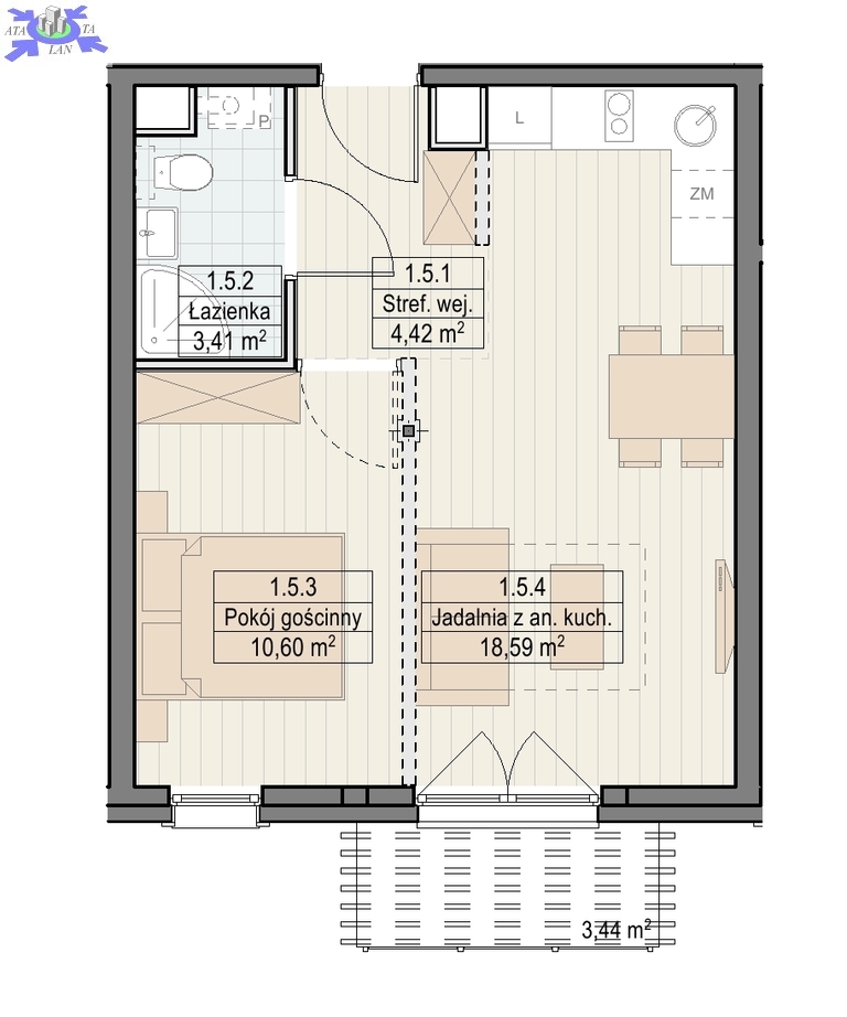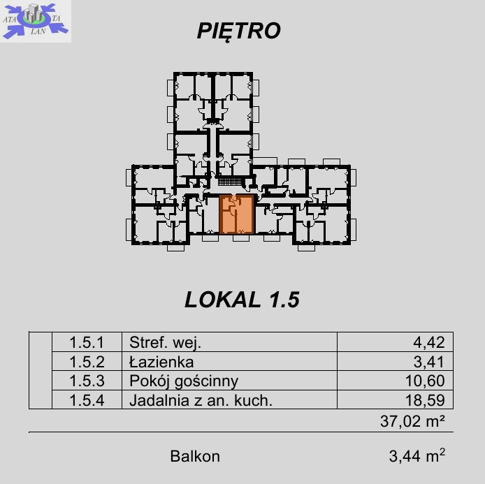 Apartament będący przedmiotem tej oferty znajduje się na piętrze i ma powierzchnię 37,32 m2. Składa się z salonu z aneksem kuchennym, sypialni, łazienki i przedpokoju.