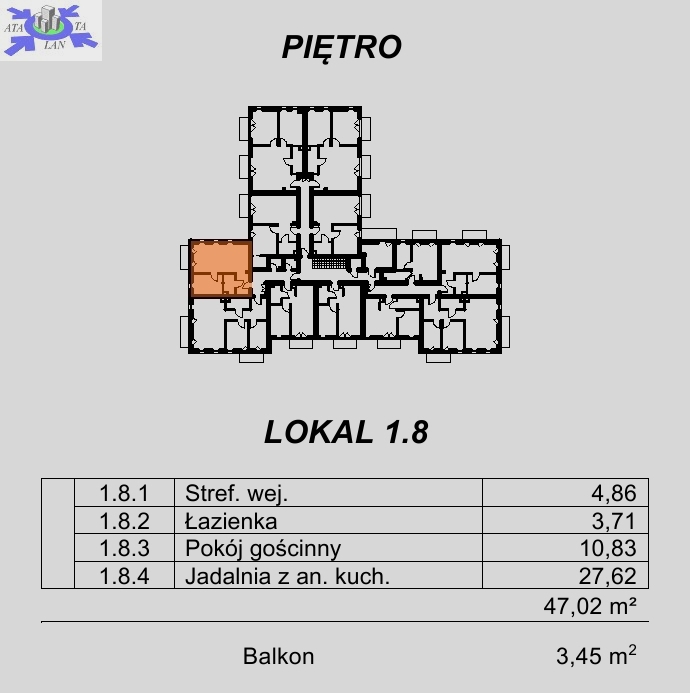 Zapraszam do przejrzenia galerii. Znajduje się tam rzut lokalu oraz całej kondygnacji.