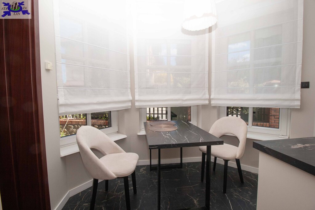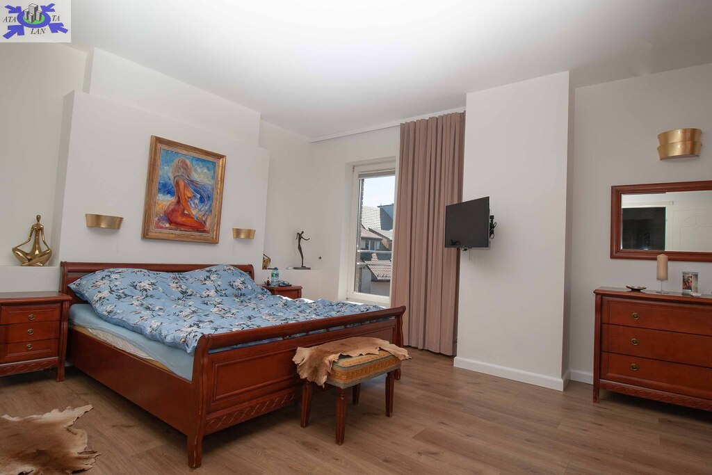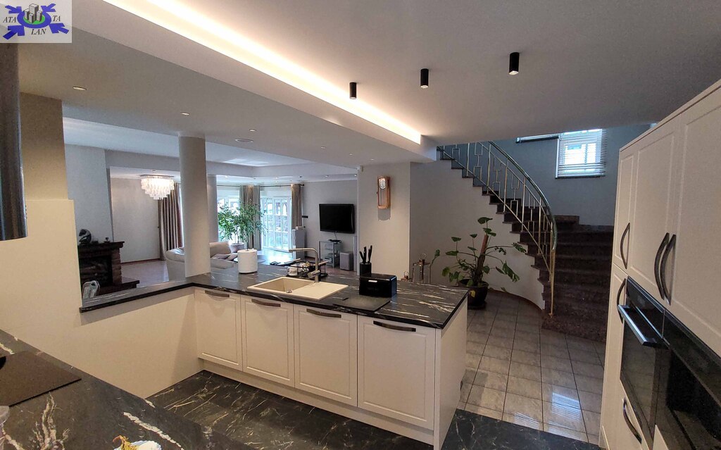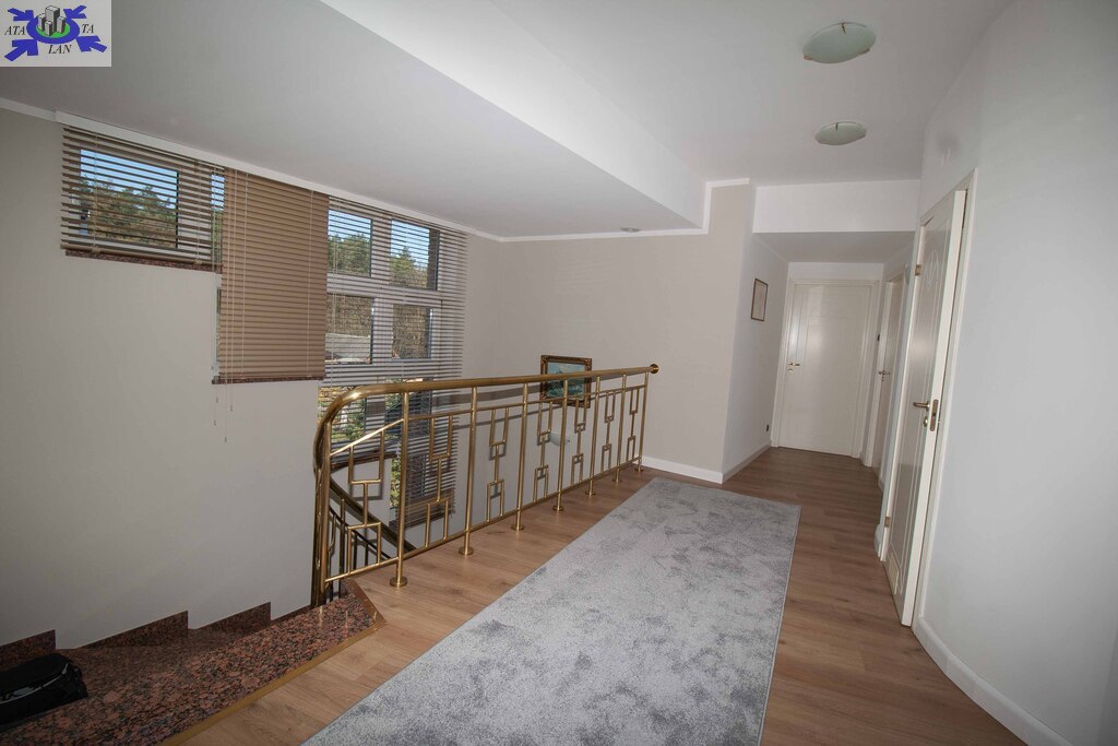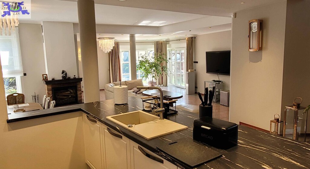 Dom został zaprojektowany i wykończony z pomocą architekta przy użyciu najwyższej jakości materiałów. Wnętrza urządzono ze smakiem i dużą dbałością o detale - oświetlenie, armatura łazienkowa oraz elementy dekoracyjne zostały sprowadzone z Hiszpanii, Włoch i Niemiec. Zasłony wykonane są z jedwabiu, a całe widoczne na zdjęciach wyposażenie może pozostać w cenie nieruchomości.