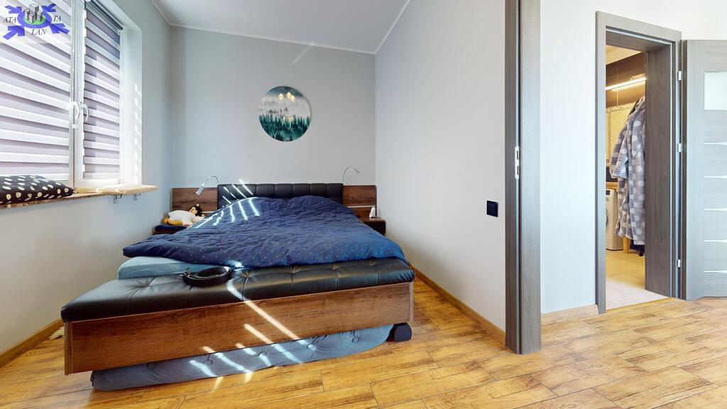 Ściany we wszystkich pokojach gładkie - malowane. Podłogi w pomieszczeniach na parterze jak i na piętrze wykonano z gresu imitującego panel podłogowy. Łazienki w wykończone ładną glazurą i terakotą. Okna w domu trzyszybowe wykonane z PCV.