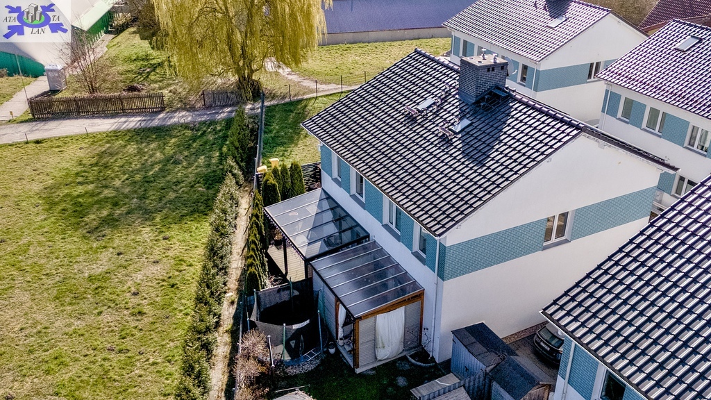 Dom zbudowany w 2017 roku na działce 176m2 jako ostatni bliźniak w ślepej uliczce osiedla zapewnia spokój od miejskiego hałasu i zgiełku ulicy.