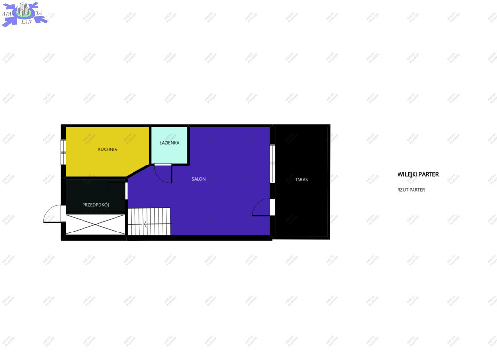 Nad górnym poziomem znajduje się strych do przechowywania różnego rodzaju rzeczy o wielkości odpowiadającej obrysowi górnych murów.