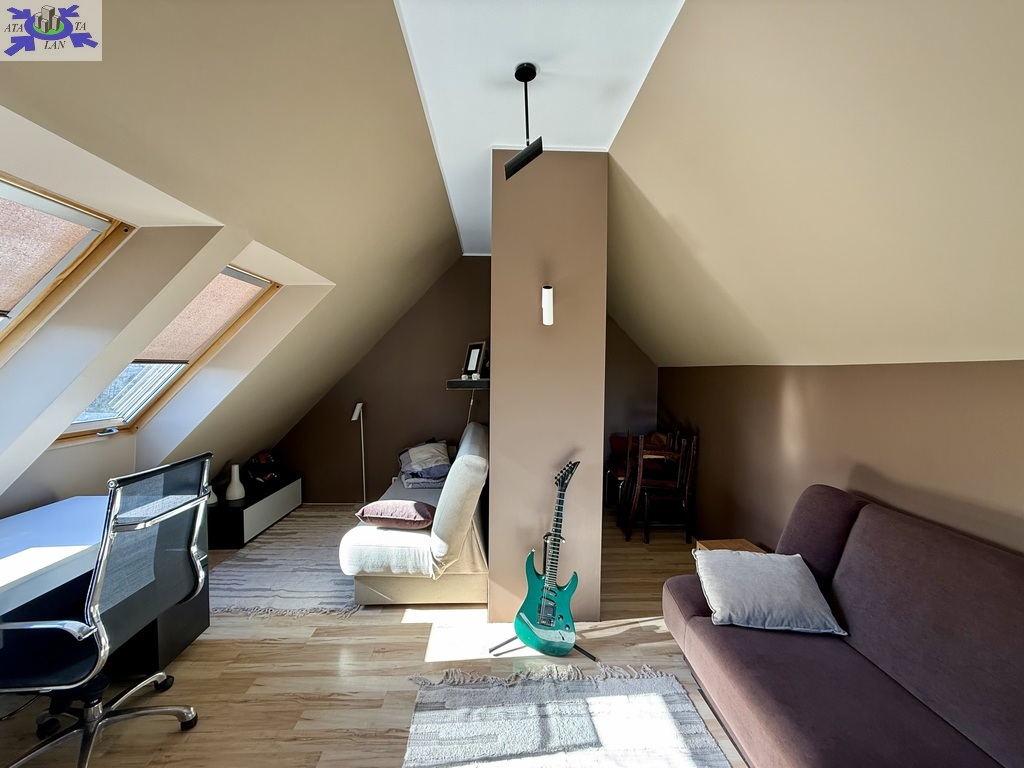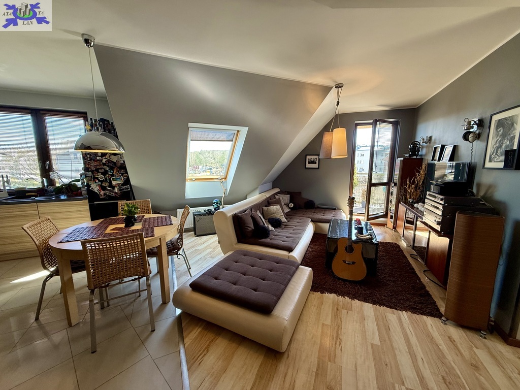 - salon z aneksem kuchennym, jadalnią oraz wyjściem na balkon,