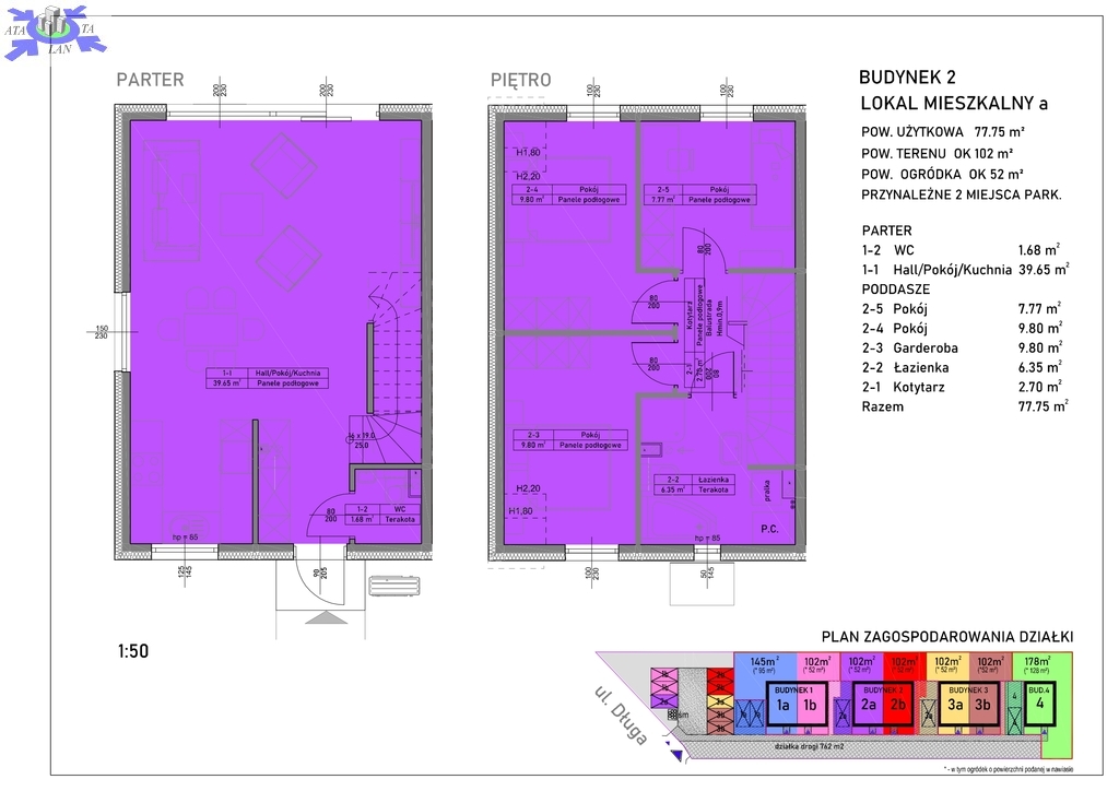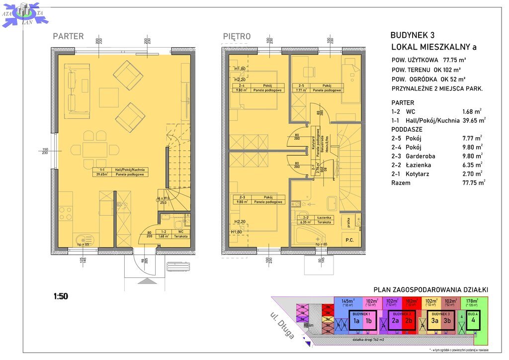 Serdecznie zapraszamy do współpracy sprzedaży lokali mieszkalnych w inwestycji znajdującej się w Mierzynie. Na powierzchnię 77,75m2 składają się salon z aneksem kuchennym o powierzchni 39,65m2, wc 1.68m2 oraz dwie sypialnie, garderoba, korytarz i łazienka. Każdy z domów w cenie ma własny ogródek o powierzchni 52m2 oraz dwa miejsca parkingowe. Ogrzewanie podłogowe - pompa ciepła. Woda z sieci gminnej, kanalizacja sanitarna również z sieci gminnej. Planowane zakończenie budowy 30.06.2025r, przeniesienie własności do 31.12.2025r.