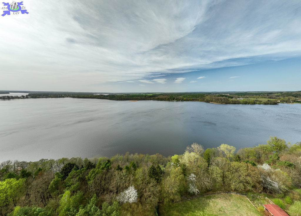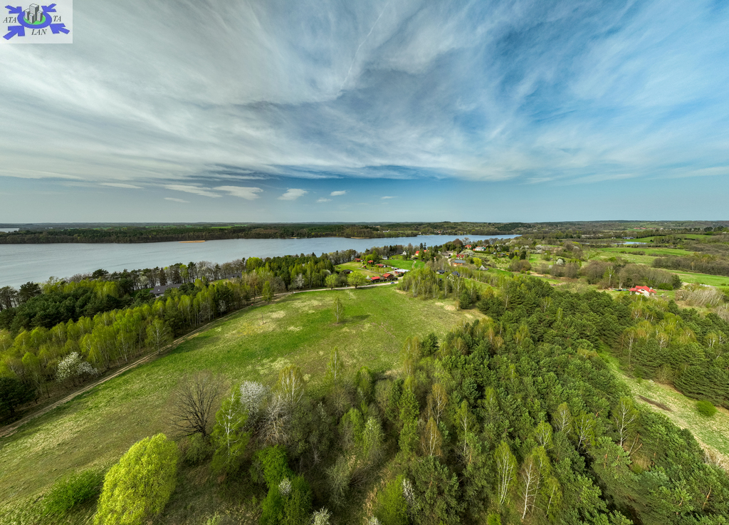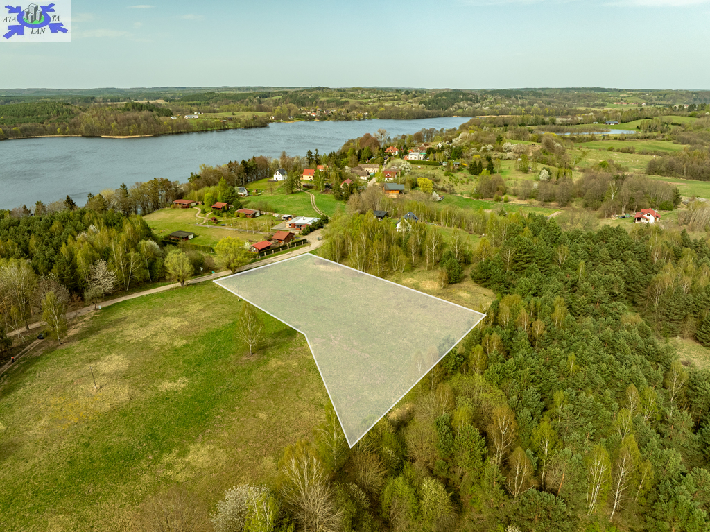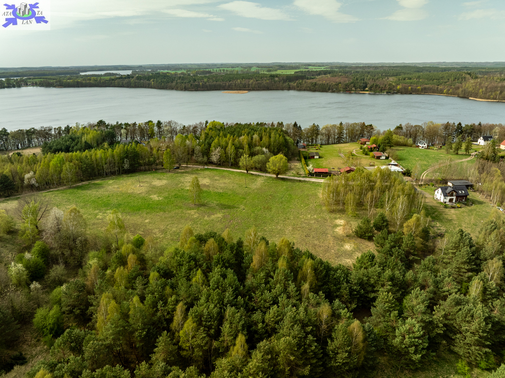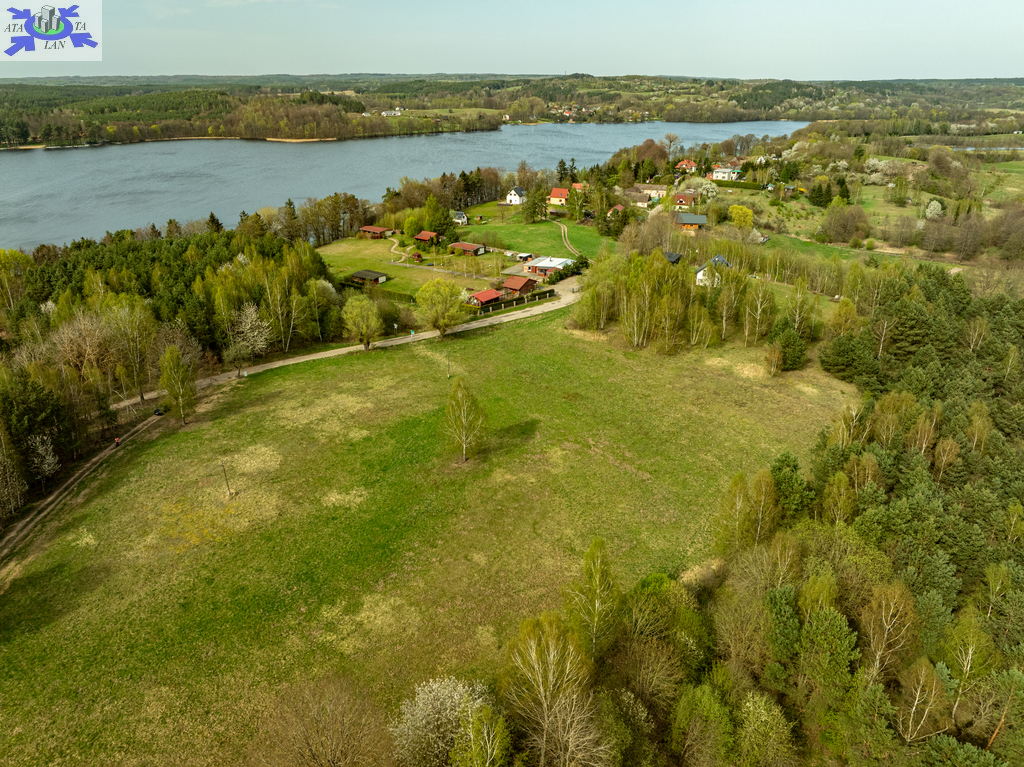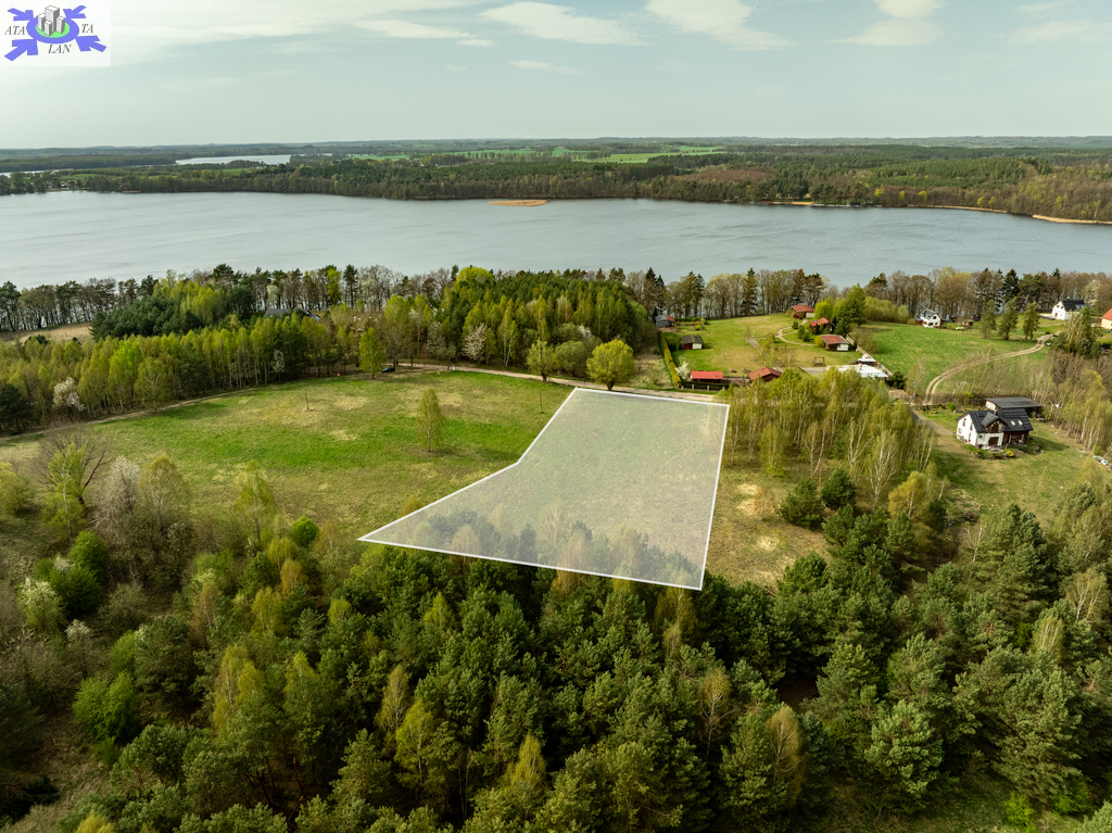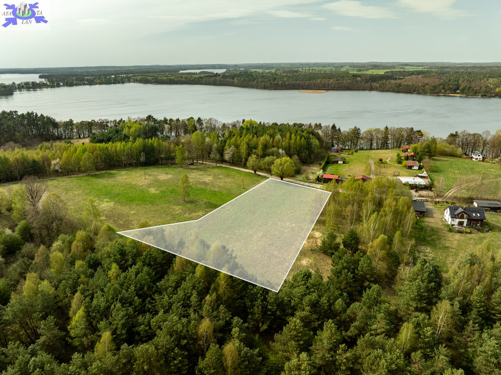 Działka o pow. 4504m2 oddalona jest w linii prostej od jeziora ok 145m.