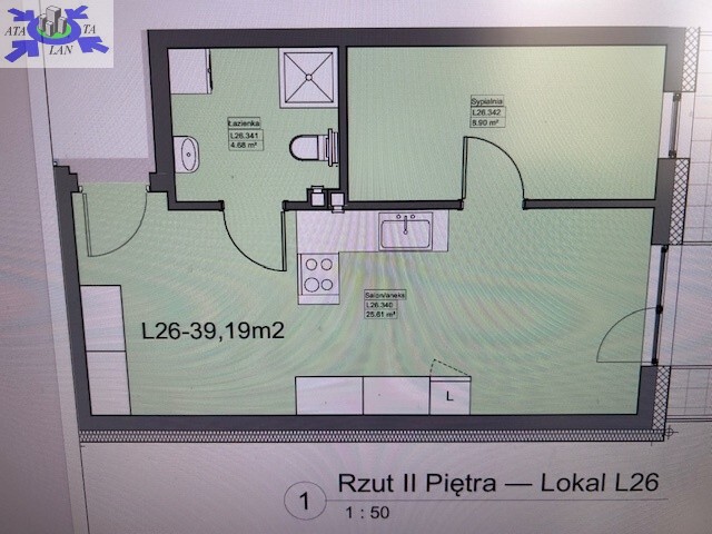- pokój z aneksem 25,61 m2