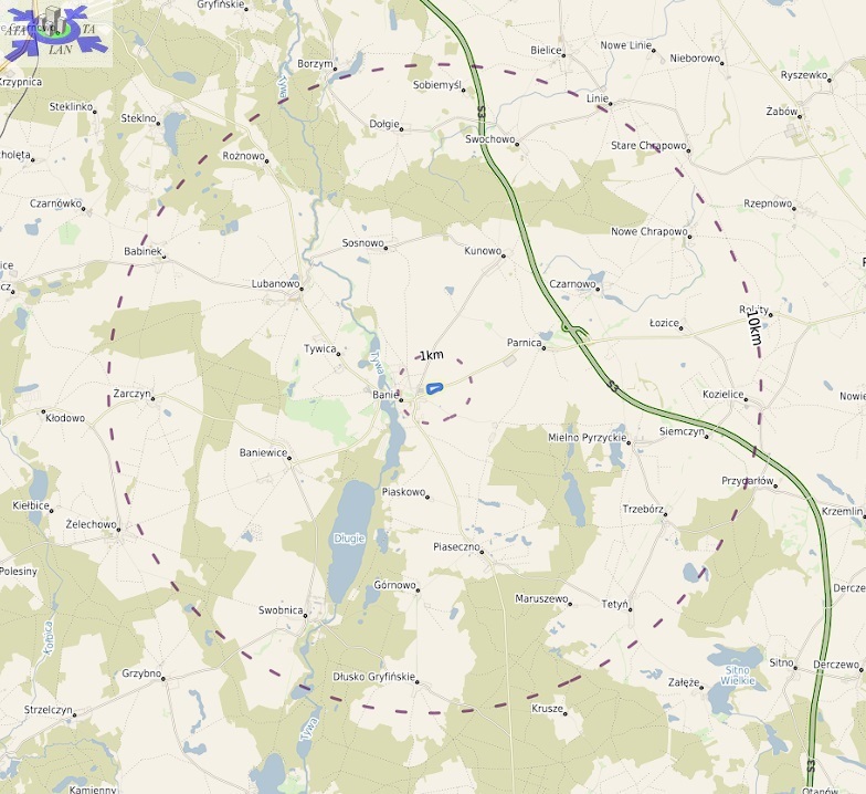 Nieruchomość położona jest w obszarze obowiązywania studium uwarunkowań i kierunków zagospodarowania przestrzennego gminy banie, z przeznaczeniem jako tereny rolnicze.