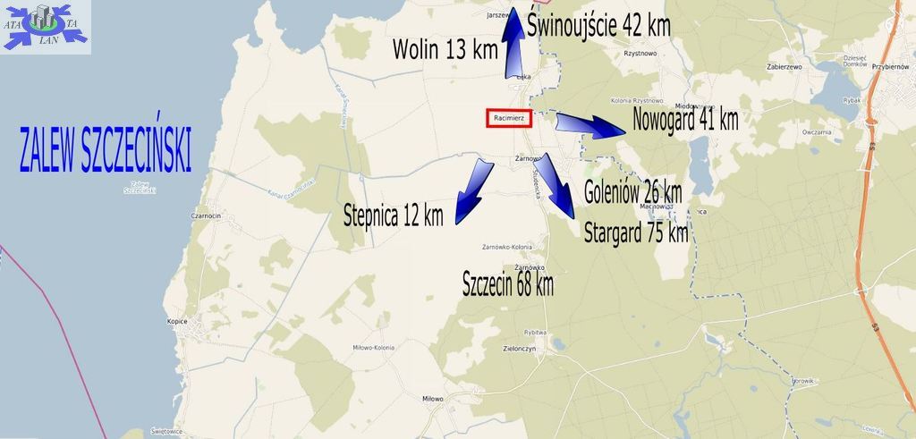 Odległość do Świnoujścia - dzielnica Warszów - ok. 42 km, do promenady w Świnoujściu - ok. 50 km