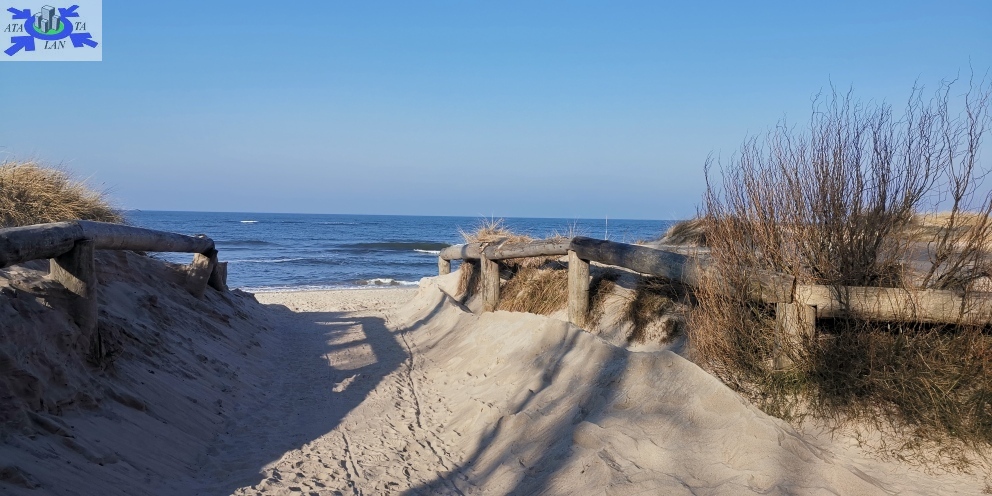 Odległość do morza ok. 1 km pieszo lub ok. 2 km samochodem. Przed plażą bardzo duży parking, następnie krótkie przejście przez las i piękna, piaszczysta, szeroka plaża.