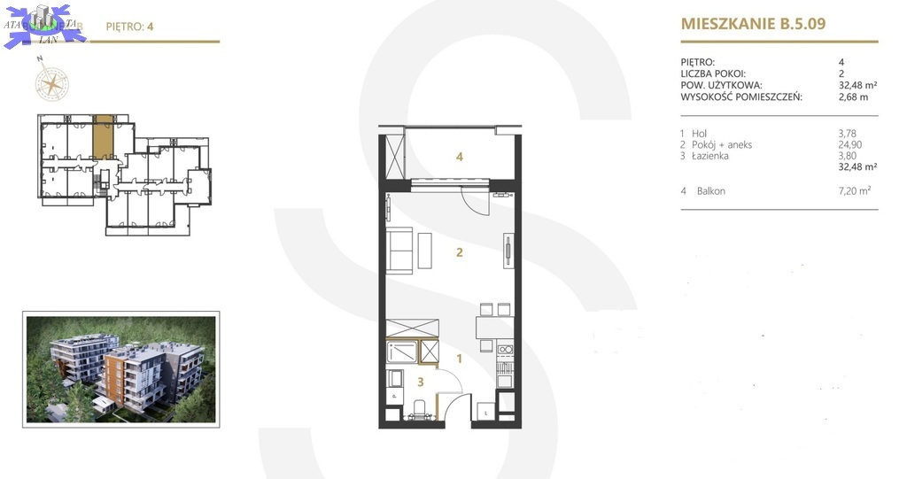 Do mieszkania przynależy również balkon o powierzchni 7,2 m2