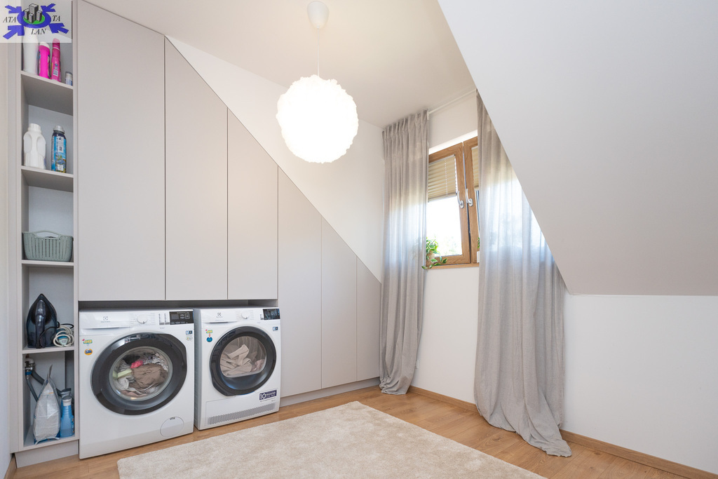 - dużej garderoby (pokój zagospodarowany na garderobę z pralka i suszarką)