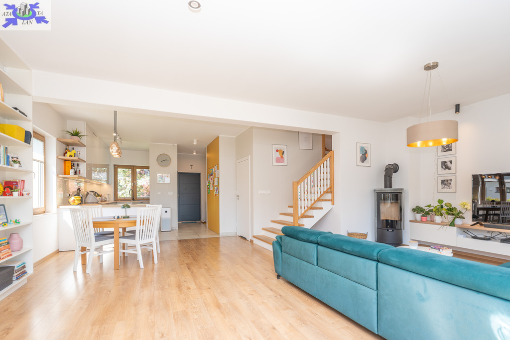 wybrukowany polbrukiem wjazd do garażu, wejście do domu oraz taras , opaska wokół domu, dojście do śmietnikówogrzewanie podłogowe w całym domu. W łazienkach dodatkowo zamontowane grzejniki elektryczneinstalacja pod odkurzacz centralny (konieczność zamontowania jednostki centralnej)instalacja elektryczna - 230V, siła, biały osprzęt Legranda instalacja pod panele fotowoltaiczneinstalacja tvinstalacja hydraulicznasystem rozprowadzenia deszczówkitynki wewnętrze gipsowe, kładzione maszynowoschody wewnętrzne wylewane pokryte drewnemkominekzamontowany zmiękczacz wodyogródek podlewany za pomocą automatycznego systemu nawadniania