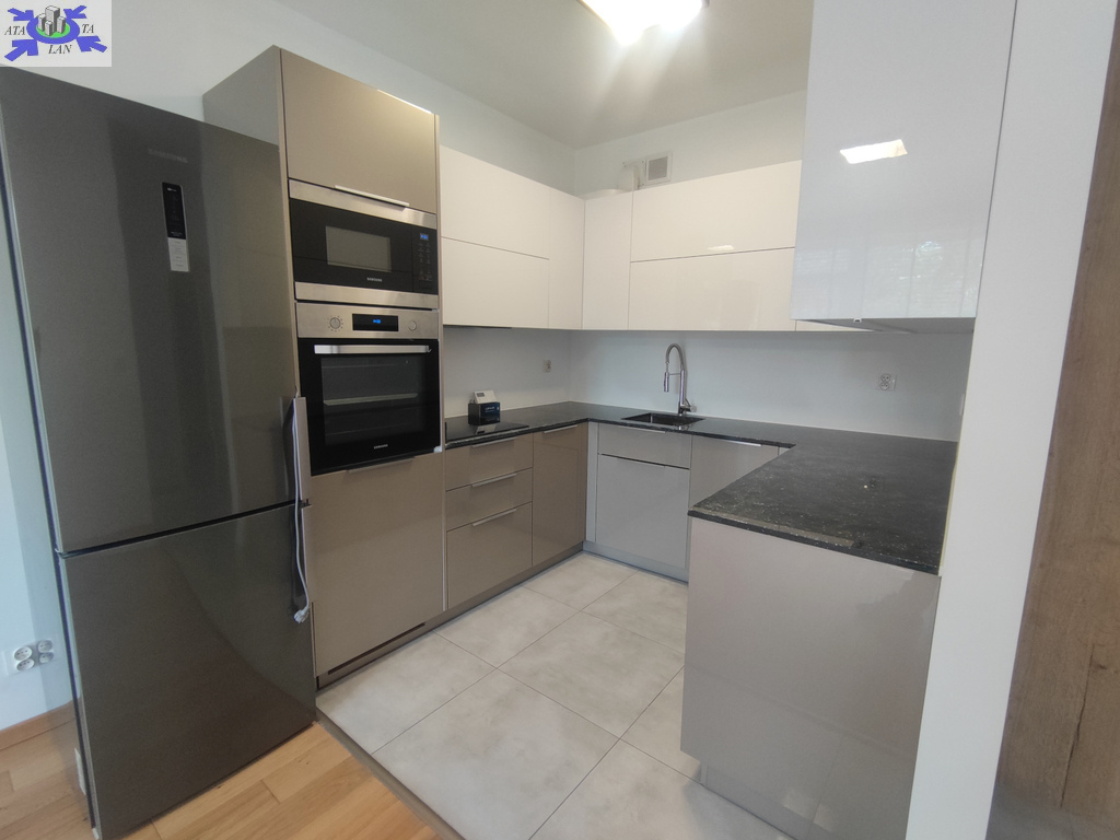W kuchni meble w zabudowie wraz ze wysokiej jakości sprzętem AGD.