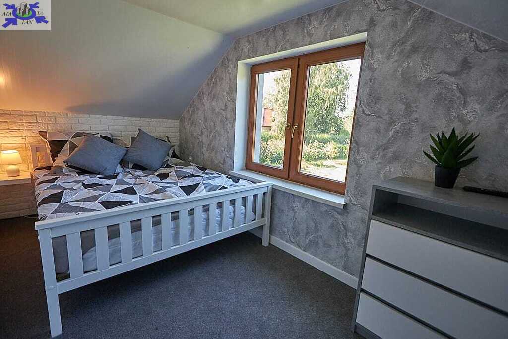 Piętro dwie oddzielne sypialnie - jedna przystosowana dla trzech osób, druga dla dwóch. Maksymalna liczba gości w jednym domku to siedem.