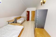 Na poddaszu - 128 m2, hol, 6 osobnych umeblowanych pokoi, każdy z łazienką.