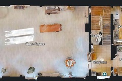 Parter 125 m2, z czego 93 m2 to 1 duża sala z 3 dużymi oknami, korytarz, wc, kuchnia, kotłownia.