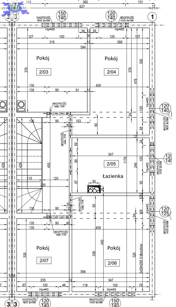- ściany nośne 24cm + 20 cm styropianu